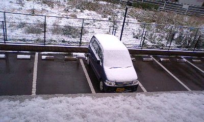朝起きたら外は真っ白でした。午前中はずっと降ってた。